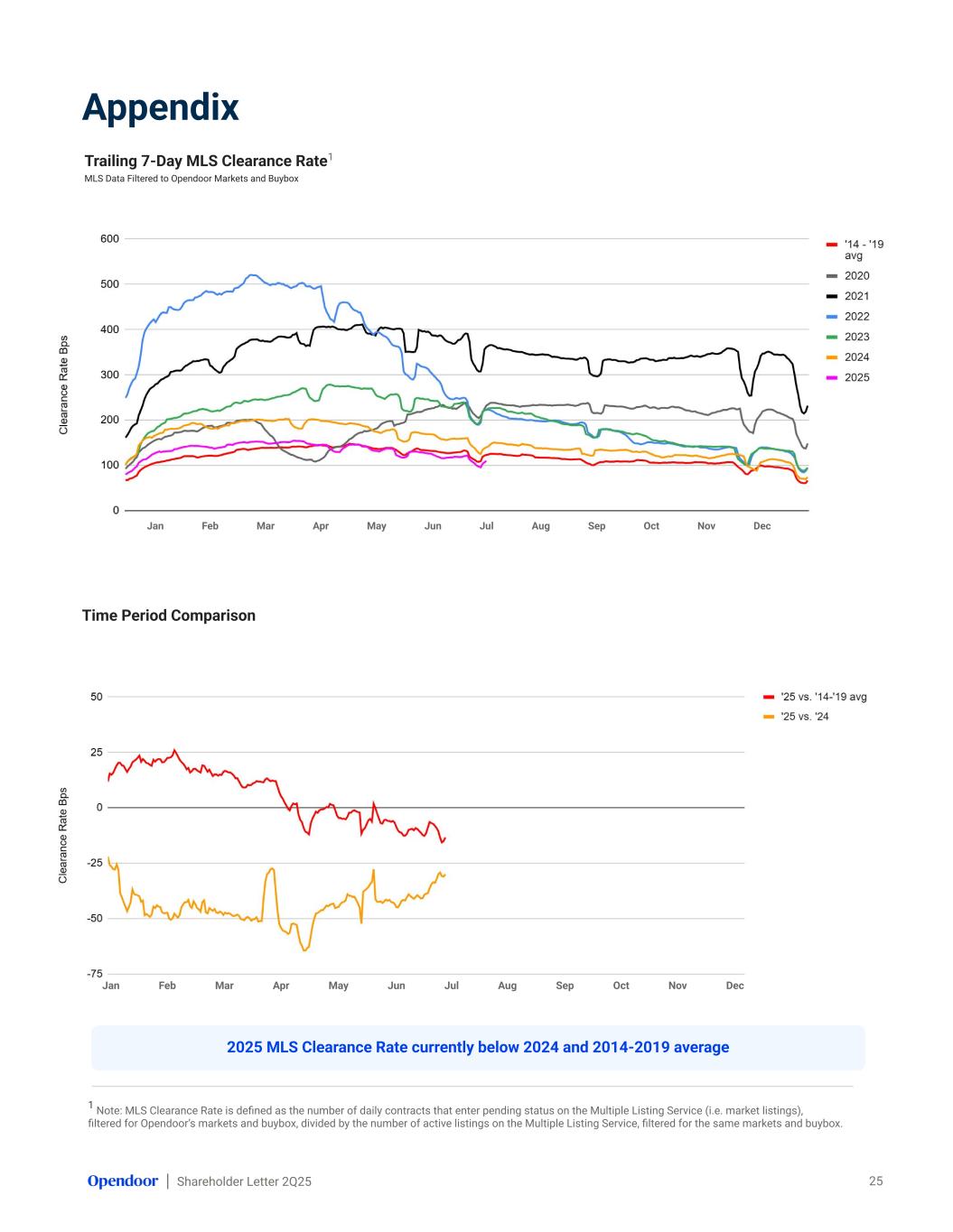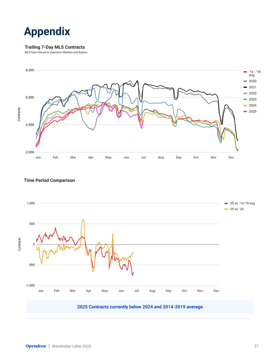 Shareholder Letter 2Q25 Jan Feb Mar Apr May Jun Jul Aug Sep Oct Nov Dec Appendix Trailing 7-Day MLS Contracts MLS Data Filtered to Opendoor Markets and Buybox 27 Time Period Comparison Jan Feb Mar Apr May Jun Jul Aug Sep Oct Nov Dec 2025 Contracts currently below 2024 and 2014-2019 average