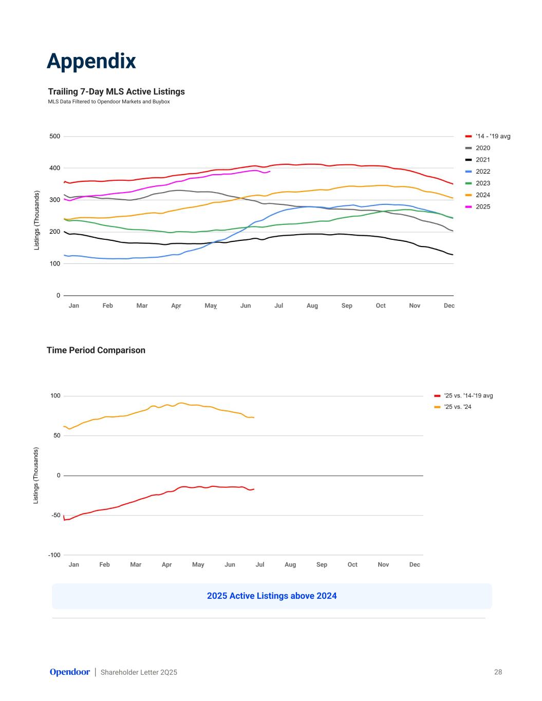 Shareholder Letter 2Q25 Jan Feb Mar Apr May Jun Jul Aug Sep Oct Nov Dec Jan Feb Mar Apr May Jun l ec Appendix Trailing 7-Day MLS Active Listings MLS Data Filtered to Opendoor Markets and Buybox 28 Time Period Comparison Jan Feb Mar Apr May Jun Jul Aug Sep Oct Nov Dec 2025 Active Listings above 2024