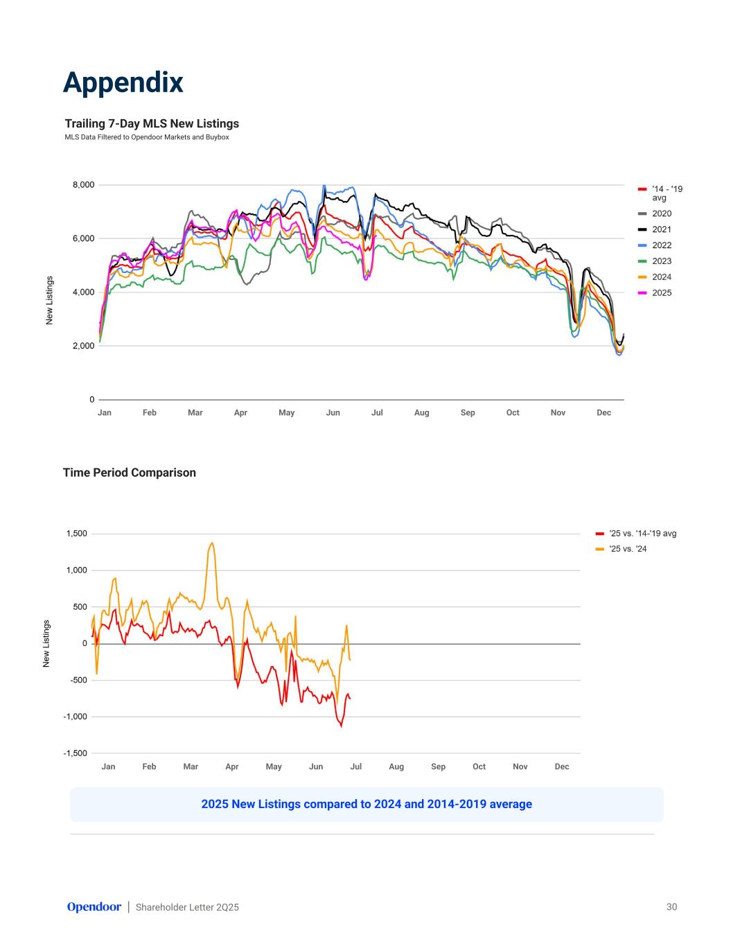 Shareholder Letter 2Q25 Jan Feb Mar Apr May Jun Jul Aug Sep Oct Nov Dec Appendix Trailing 7-Day MLS New Listings MLS Data Filtered to Opendoor Markets and Buybox 30 Time Period Comparison Jan Feb Mar Apr May Jun Jul Aug Sep Oct Nov Dec 2025 New Listings compared to 2024 and 2014-2019 average