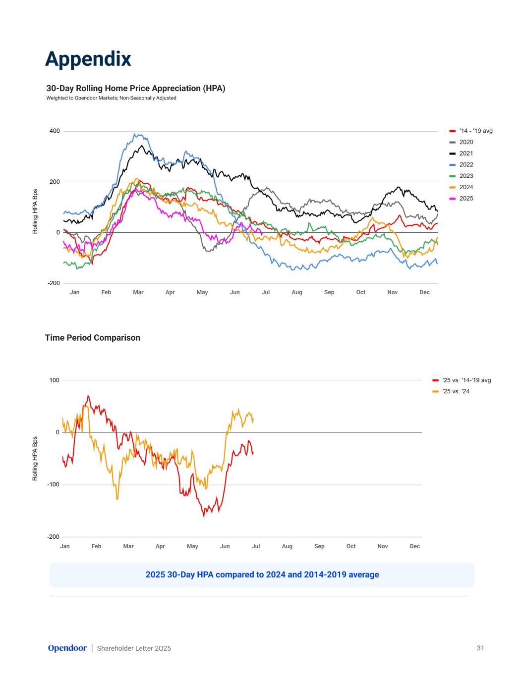 Shareholder Letter 2Q25 Jan Feb Mar Apr May Jun Jul Aug Sep Oct Nov Dec Appendix 30-Day Rolling Home Price Appreciation (HPA) Weighted to Opendoor Markets; Non-Seasonally Adjusted 31 Time Period Comparison Jan Feb Mar Apr May Jun Jul Aug Sep Oct Nov Dec 2025 30-Day HPA compared to 2024 and 2014-2019 average