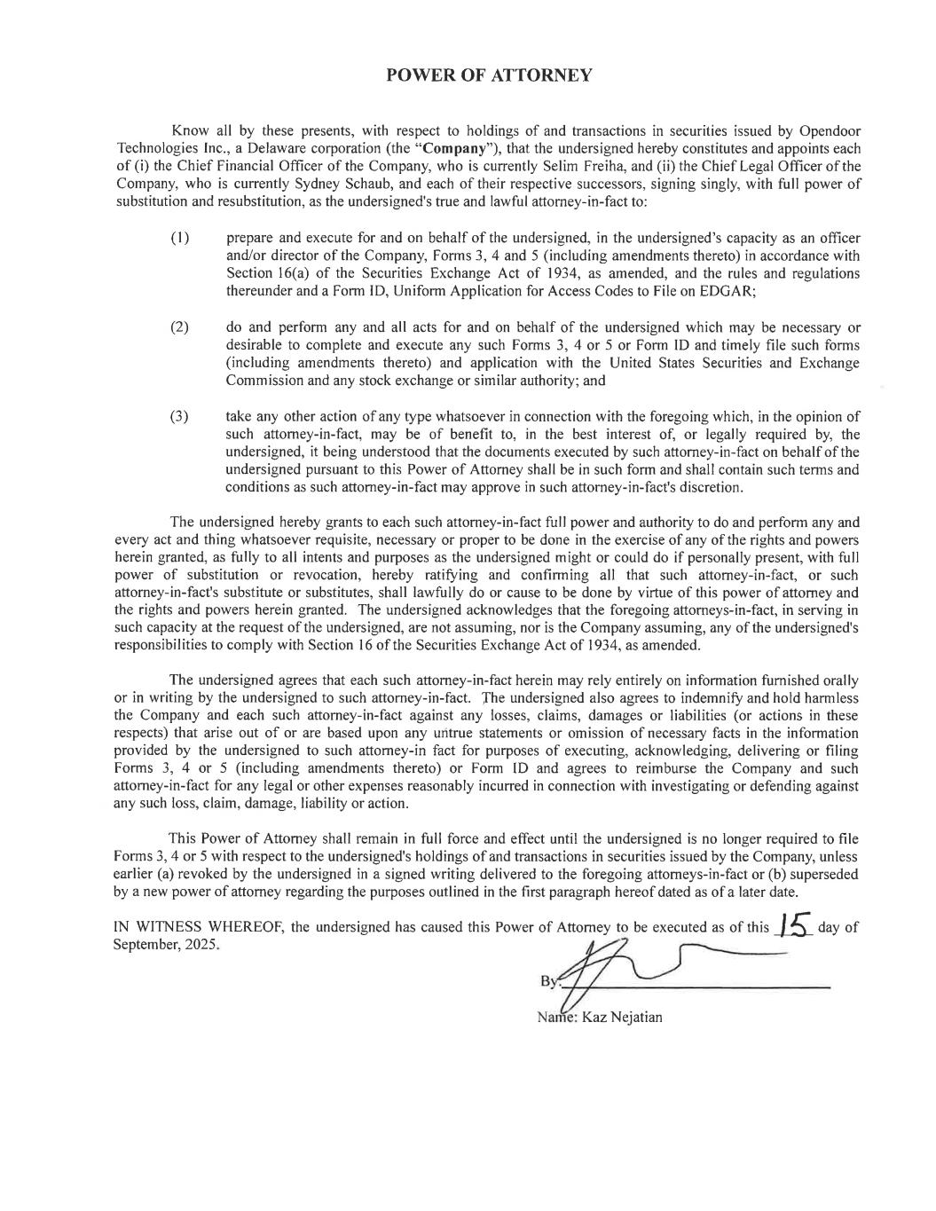 | /s/ Sydney Schaub, Attorney-in-fact | 09/17/2025 | |