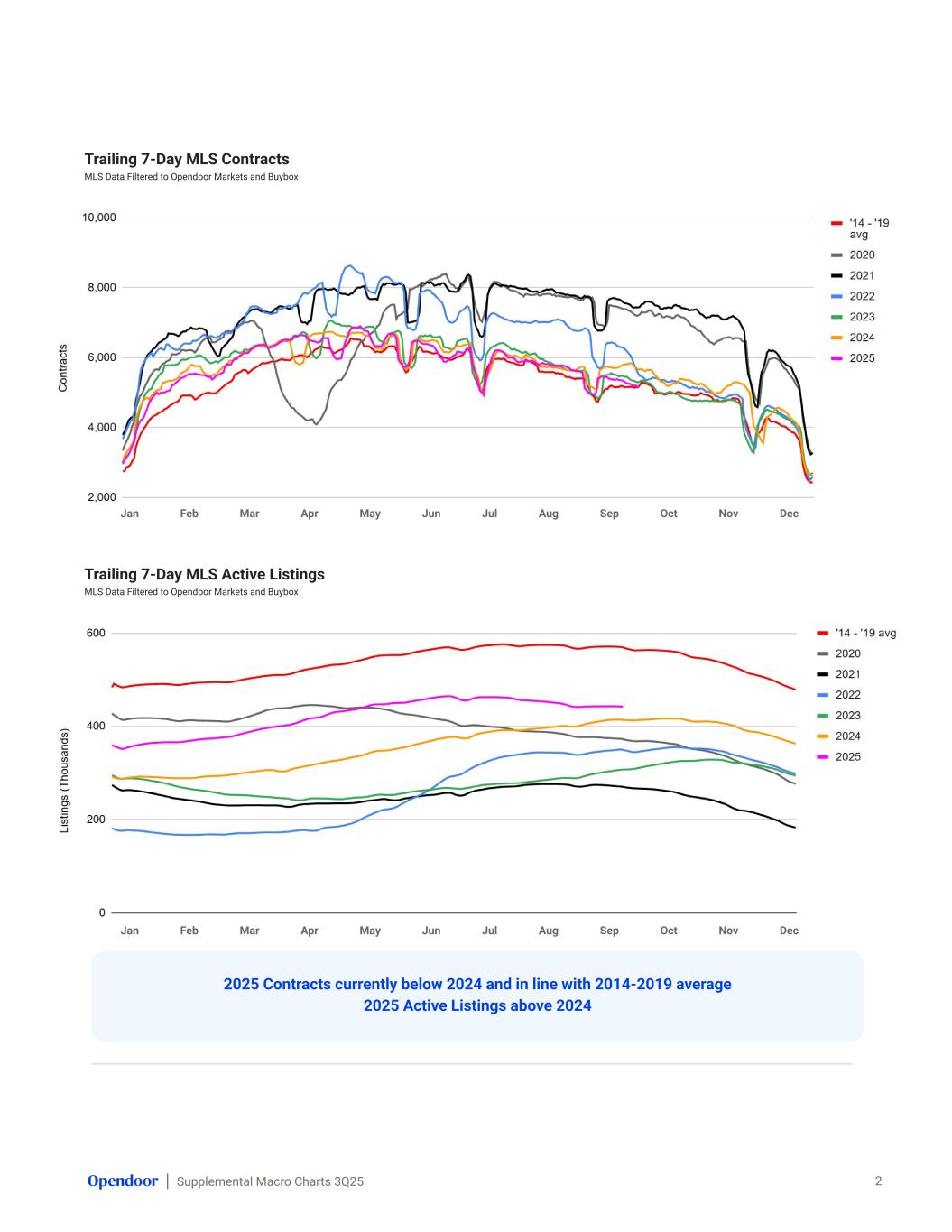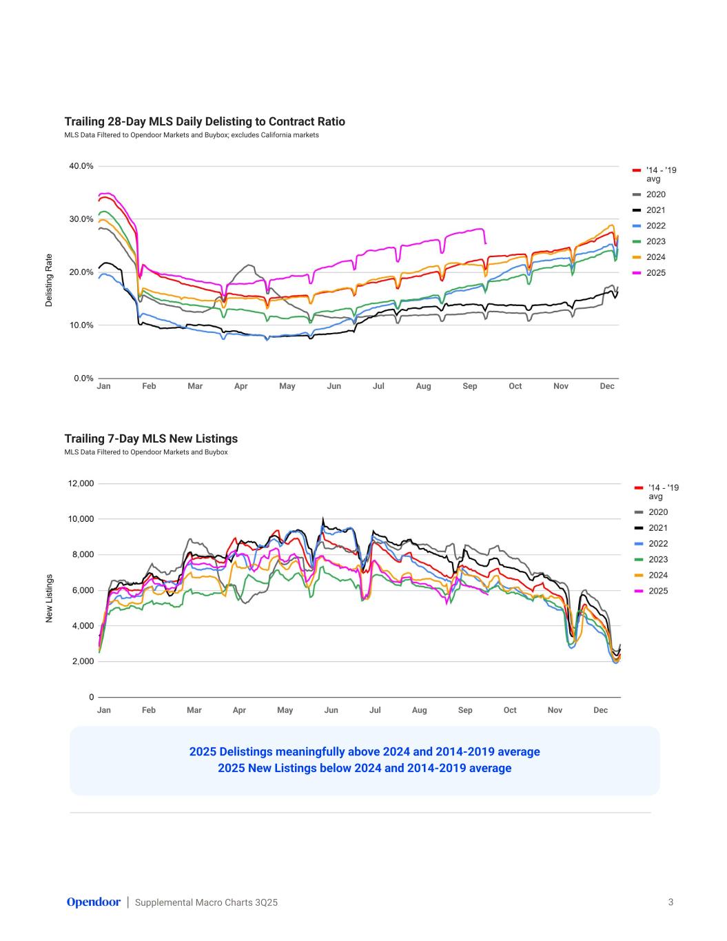 Supplemental Macro Charts 3Q25 Trailing 7-Day MLS Contracts MLS Data Filtered to Opendoor Markets and Buybox 2 Trailing 7-Day MLS Active Listings MLS Data Filtered to Opendoor Markets and Buybox Jan Feb Mar Apr May Jun Jul Aug Sep Oct Nov Dec Jan Feb Mar Apr May Jun Jul Aug Sep Oct Nov Dec 2025 Contracts currently below 2024 and in line with 2014-2019 average 2025 Active Listings above 2024